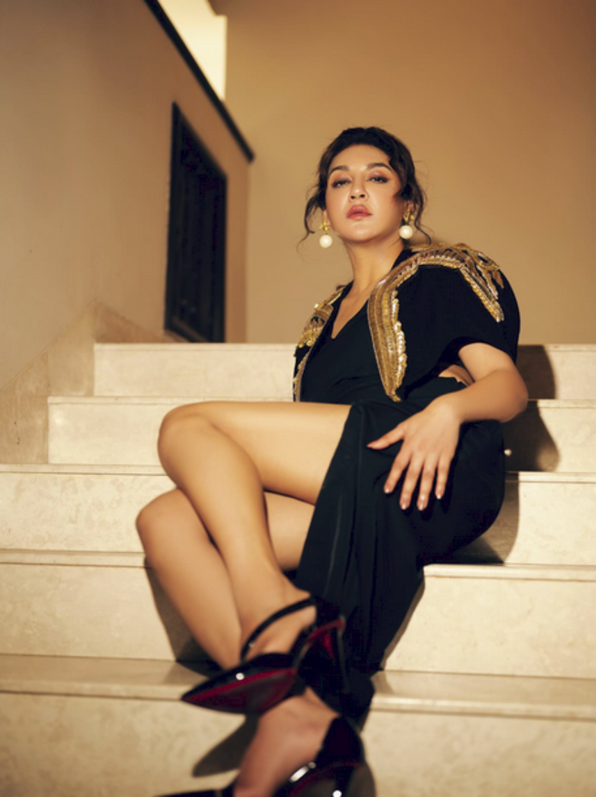 তার গায়ে মানানসই কালো হাই হিল, বড় মুক্তার দুল এবং স্টেটমেন্ট আঙটি সাজে এনেছে রাজকীয় ছোঁয়া। হালকা মেকআপ, ন্যুড লিপস্টিক আর ঢেউখেলানো চুলের স্টাইলে এই লুককে আরও আকর্ষণীয় করে তুলেছে।ছবিগুলো ঘিরে সামাজিক যোগাযোগমাধ্যমে নেটিজেনদের শুরু হয়েছে মন্তব্যের ঝড়। ভক্তদের কেউ লিখেছেন, “এ যেন আন্তর্জাতিক মানের ফ্যাশন।”