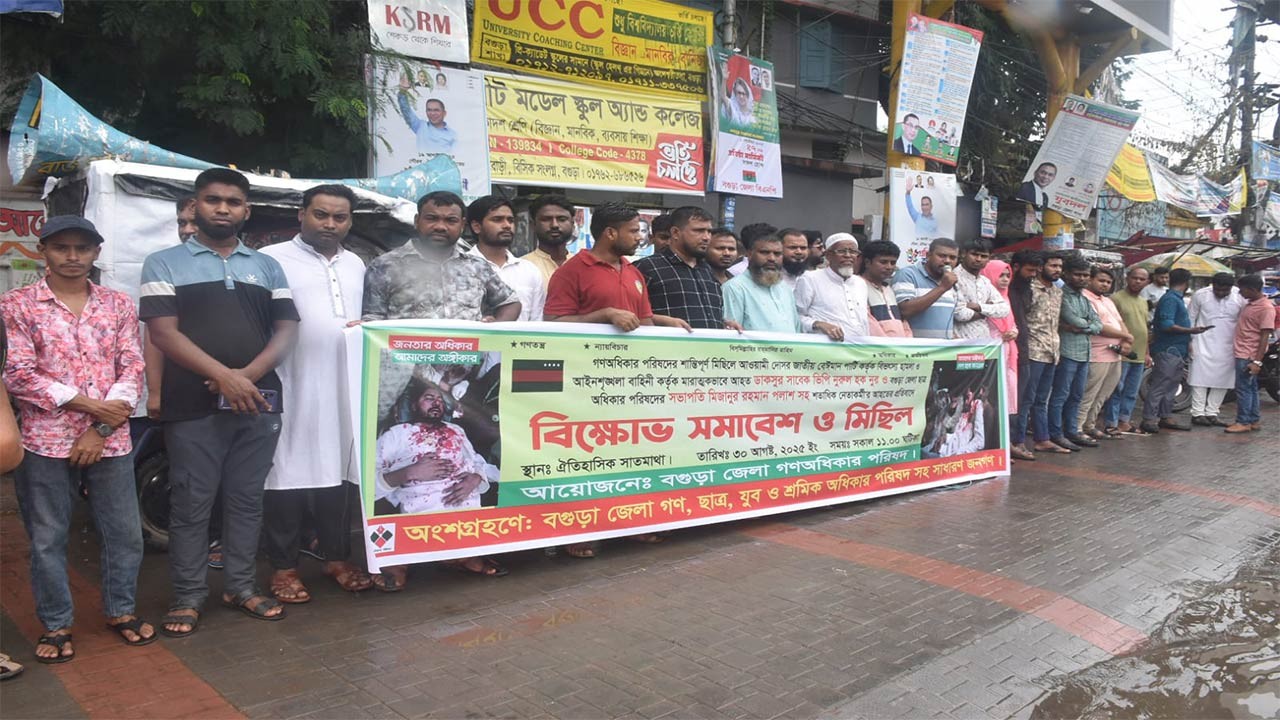 নুরের ওপর হামলার প্রতিবাদে বগুড়ায় গণঅধিকার পরিষদের বিক্ষোভ-সমাবেশ