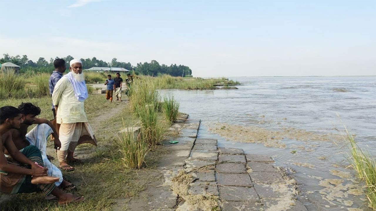 সিরাজগঞ্জে যমুনার পানি বাড়ছে, বেড়িবাঁধে ধস