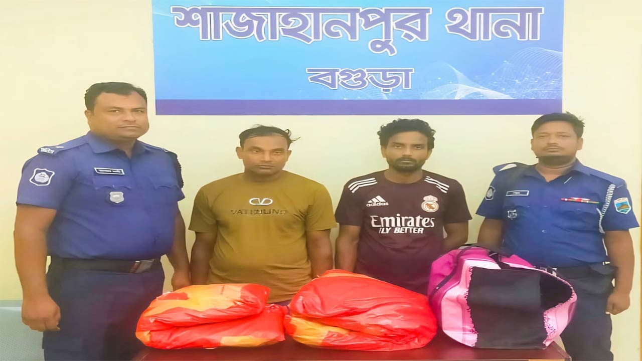 বগুড়ার শাজাহানপুরে যাত্রীবাহী বাসে মিলল ১০ কেজি গাঁজা, দুই কারবারি গ্রেফতার