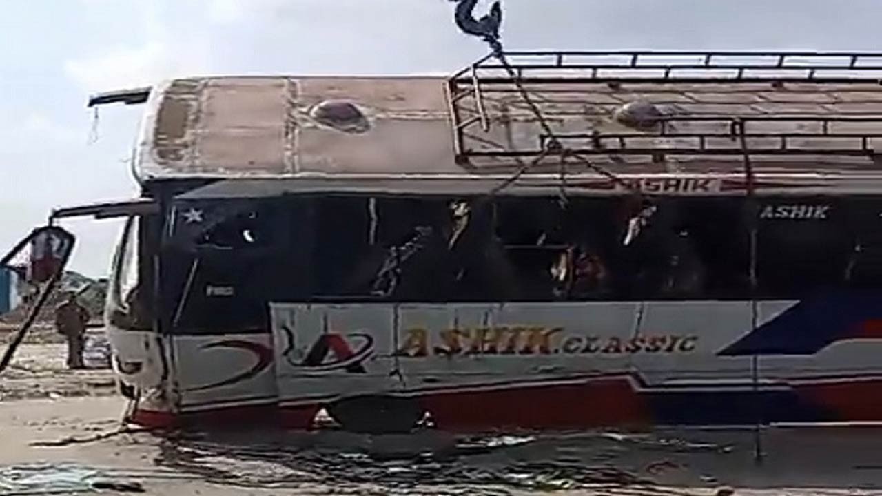সিরাজগঞ্জের উল্লাপাড়ায় বাস উল্টে সুপারভাইজার নিহত