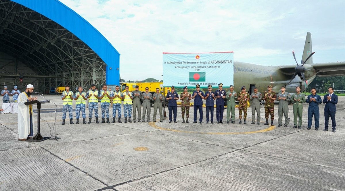 শুক্রবার সকাল ৮টার দিকে বাংলাদেশ বিমান বাহিনীর একটি পরিবহন বিমান জরুরি ত্রাণ সামগ্রীসহ আফগানিস্তানের কাবুলের উদ্দেশ্যে গমন করে।