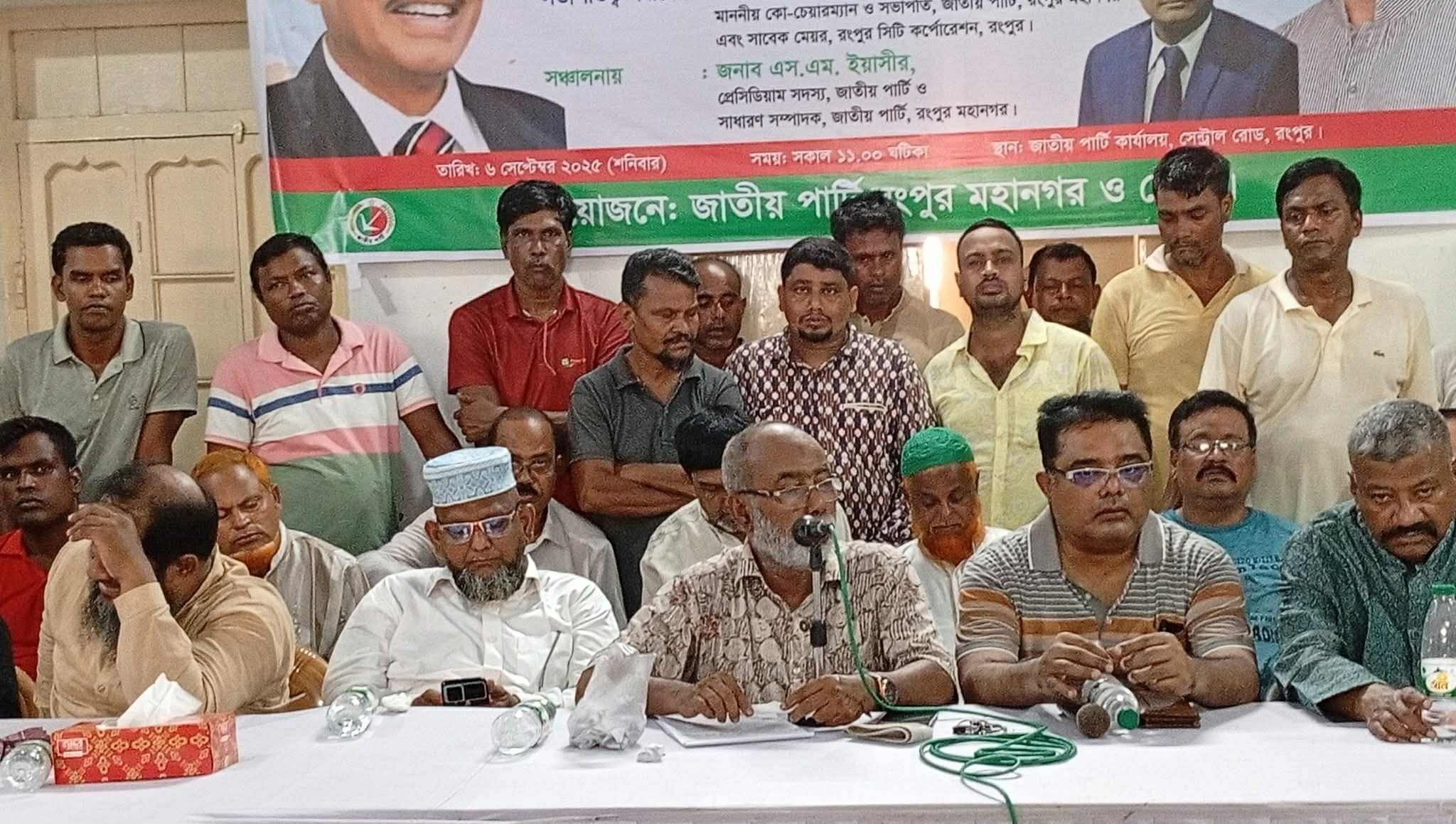 আরও পড়ুনসভায় জাতীয় পার্টির (জাপা) প্রেসিডিয়াম সদস্য এস এম ইয়াসির, মহানগর কমিটির সিনিয়র সহ সভাপতি লোকমান হোসেন, সহ সভাপতি জাহিদুল ইসলাম, জেলা কমিটির সদস্য সচিব হাজী আব্দুর রাজ্জাক, কেন্দ্রীয় সাংগঠনিক সম্পাদক হাসানুজ্জামান নাজিমসহ স্থানীয় নেতাকর্মীরা উপস্থিত ছিলেন। জাপা কো-চেয়ারম্যান বলেন, গণতন্ত্রের স্বার্থে যারা গণতন্ত্রের পক্ষের শক্তি এবং এ ধরনের মব ভায়োলেন্স এ নাই তাদেরকে বাঁচানোর জন্য বিএনপির একটা ভূমিকা থাকতে হবে। তা না হলে বিএনপি একা হয়ে যাবে। সামনে যদি নির্বাচনে জাতীয় পার্টি না থাকে তাহলে ইসলামী ঐক্যজোট, জামায়াতে ইসলামী, চরমোনাই, এনসিপি, গণঅধিকার পরিষদ দলগুলো থাকতে চায় আরেকদিকে থাকতে চায় বিএনপি। এখন তারা যদি বলে পিআর পদ্ধতি ছাড়া নির্বাচনে যাব না তখন তারা যদি সরে দাঁড়ায় তাহলে বিএনপি একা হবে। তাহলে একক নির্বাচন জাতীয় ও আন্তর্জাতিকভাবে গ্রহণযোগ্য হবে না। বিএনপিকে বিপদে ফেলার জন্য স্বাধীনতাবিরোধী শক্তিরা কিন্তু চেষ্টা করছে।