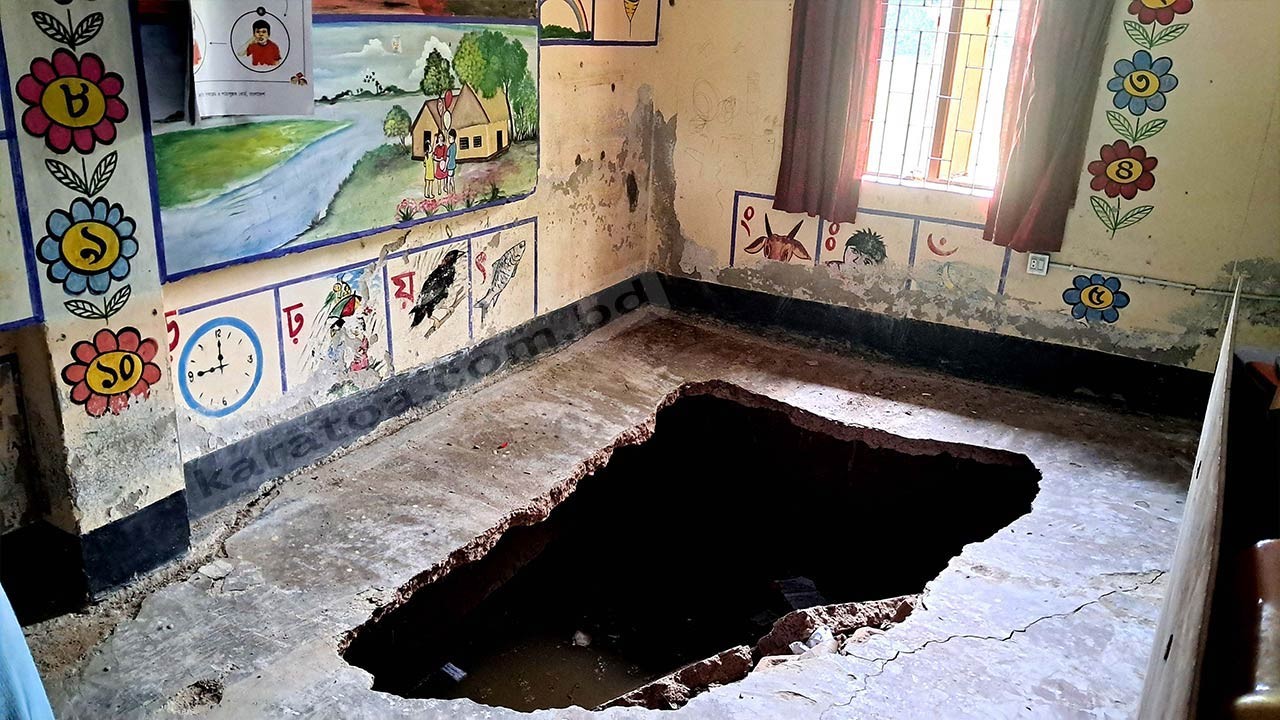 তিনি একটু সচেতন হলে এই মেঝে ধসে যাওয়ার ঘটনা ঘটত না। জানতে চাইলে বিদ্যালয়ের প্রধান শিক্ষক শ্যামনাথ দৈনিক করতোয়া’কে বলেন, অনেক দিন আগে পুকুরের ওপর এই বিদ্যালয়ের কক্ষ নির্মাণ করা হয়। সম্প্রতি উত্তর দিকে গাইডওয়াল নির্মাণ করা হলেও তিনি যোগদানের পর থেকে কোনো বরাদ্দ না পাওয়ায় মেঝে সংস্কারের কাজ করা সম্ভব হয়নি।
