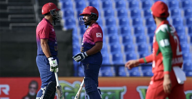 সেই লক্ষ্যে আবুধাবিতে ওমানকে ১৭৩ রানের টার্গেট দিয়েছে স্বাগতিক আরব আমিরাত। টস হেরে ব্যাটিংয়ে নেমে দারুণ শুরু পায় স্বাগতিকরা।