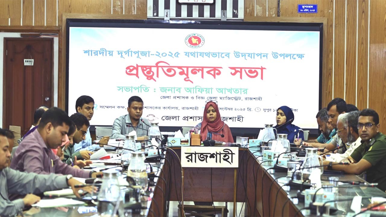 আগামী ২৮ সেপ্টেম্বর থেকে পূজা শুরু হবে। গতকাল রোববার সকালে জেলা প্রশাসকের সম্মেলন কক্ষে শারদীয় দুর্গোৎসব উপলক্ষে এক প্রস্তুতিমূলক সভা অনুষ্ঠিত হয়। এতে সভাপতিত্ব করেন রাজশাহীর জেলা প্রশাসক আফিয়া আখতার।