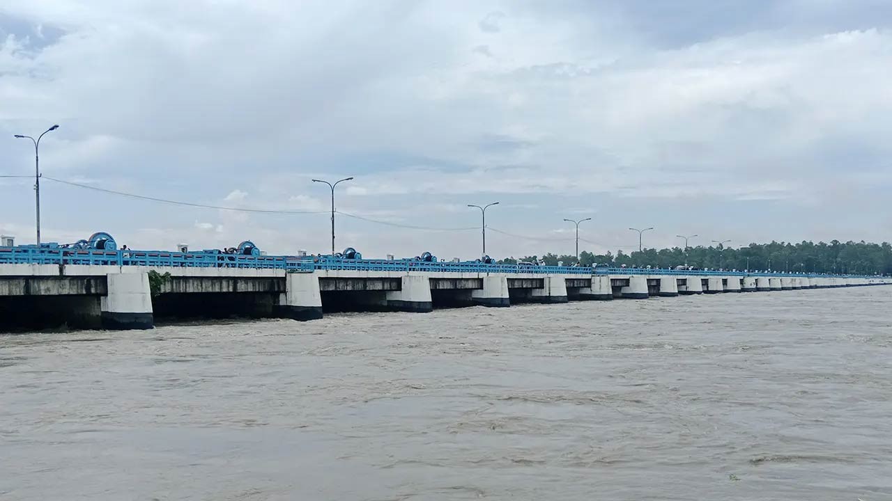 আরও পড়ুনতিস্তা ডালিয়া পয়েন্টের পানির লেভেল পরিমাপক নুরুল ইসলাম বলেন, সকাল থেকে তিস্তা নদীর পানি বৃদ্ধি পেয়ে বিপৎসীমার ৭ সেন্টিমিটার নিচ দিয়ে প্রবাহিত হচ্ছে। পানি নিয়ন্ত্রণে তিস্তা ব্যারাজের ৪৪ টি জলকপাট খুলে রাখা হয়েছে।