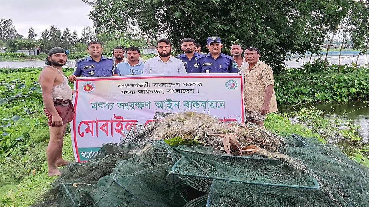 কুড়িগ্রামের রাজারহাটে অবৈধ জাল জব্দ করে আগুনে পুড়ে ধ্বংস