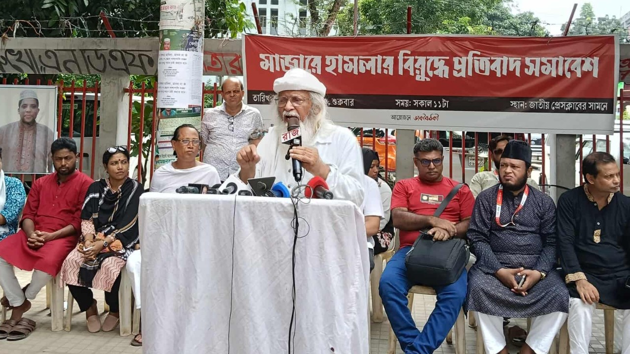 আজ শুক্রবার (১৯ সেপ্টেম্বর) জাতীয় প্রেস ক্লাবের সামনে ভাববৈঠকী কর্তৃক মাজারে হামলার বিরুদ্ধে আয়োজিত এক প্রতিবাদ সমাবেশে তিনি এসব কথা বলেন।