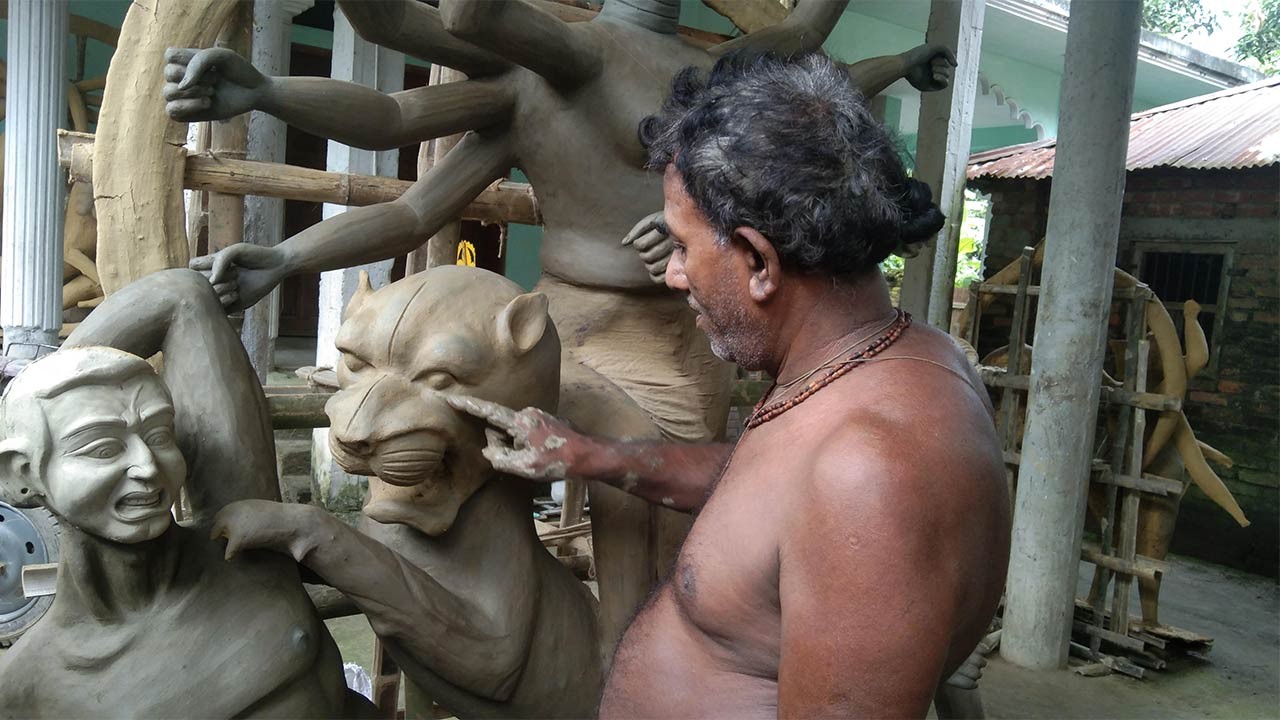 বগুড়ার দুপচাঁচিয়ায় ৪৫ টি মন্ডপে মৃৎ শিল্পীরা দুর্গা প্রতিমা তৈরিতে ব্যস্ত